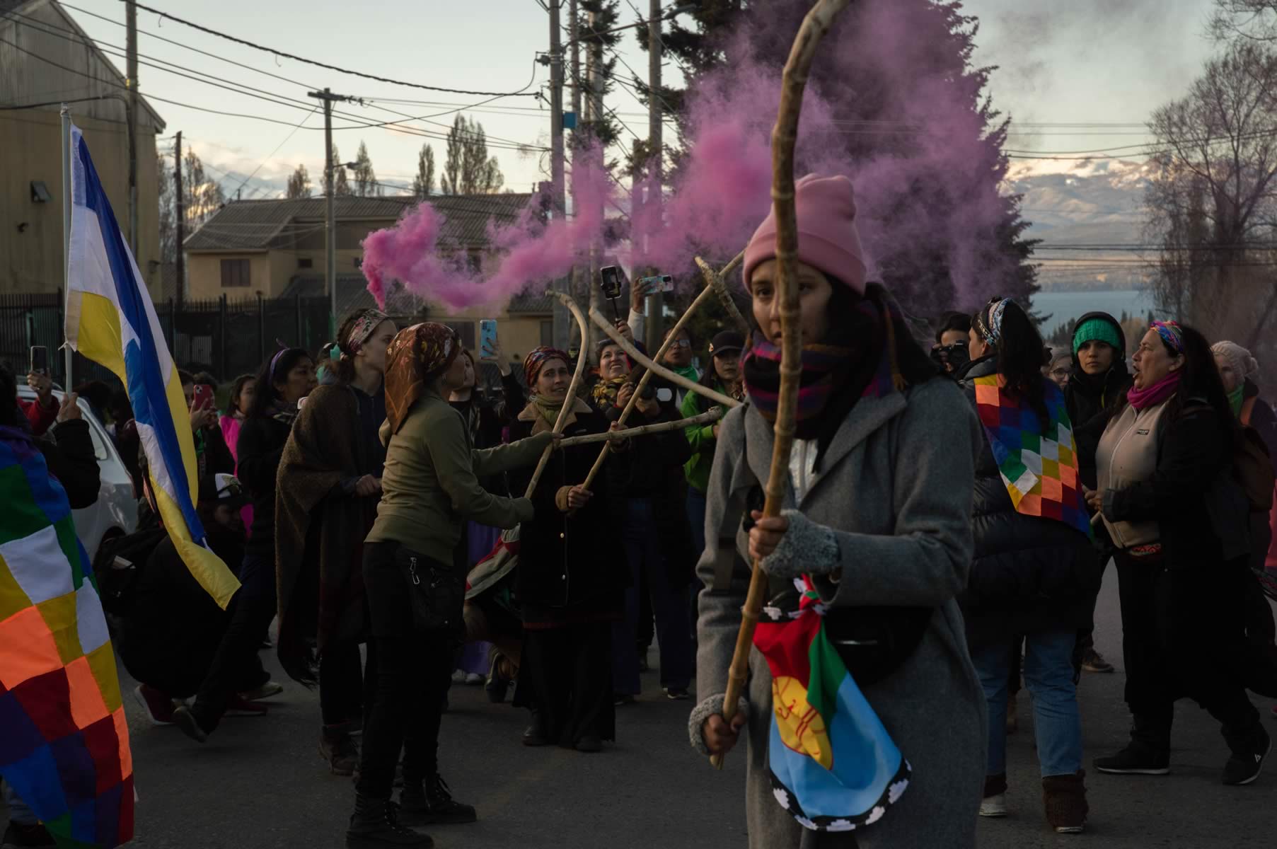 Las machis del malón (mapuches) hacen rituales con palos y danzas antes de comenzar a marchar.
